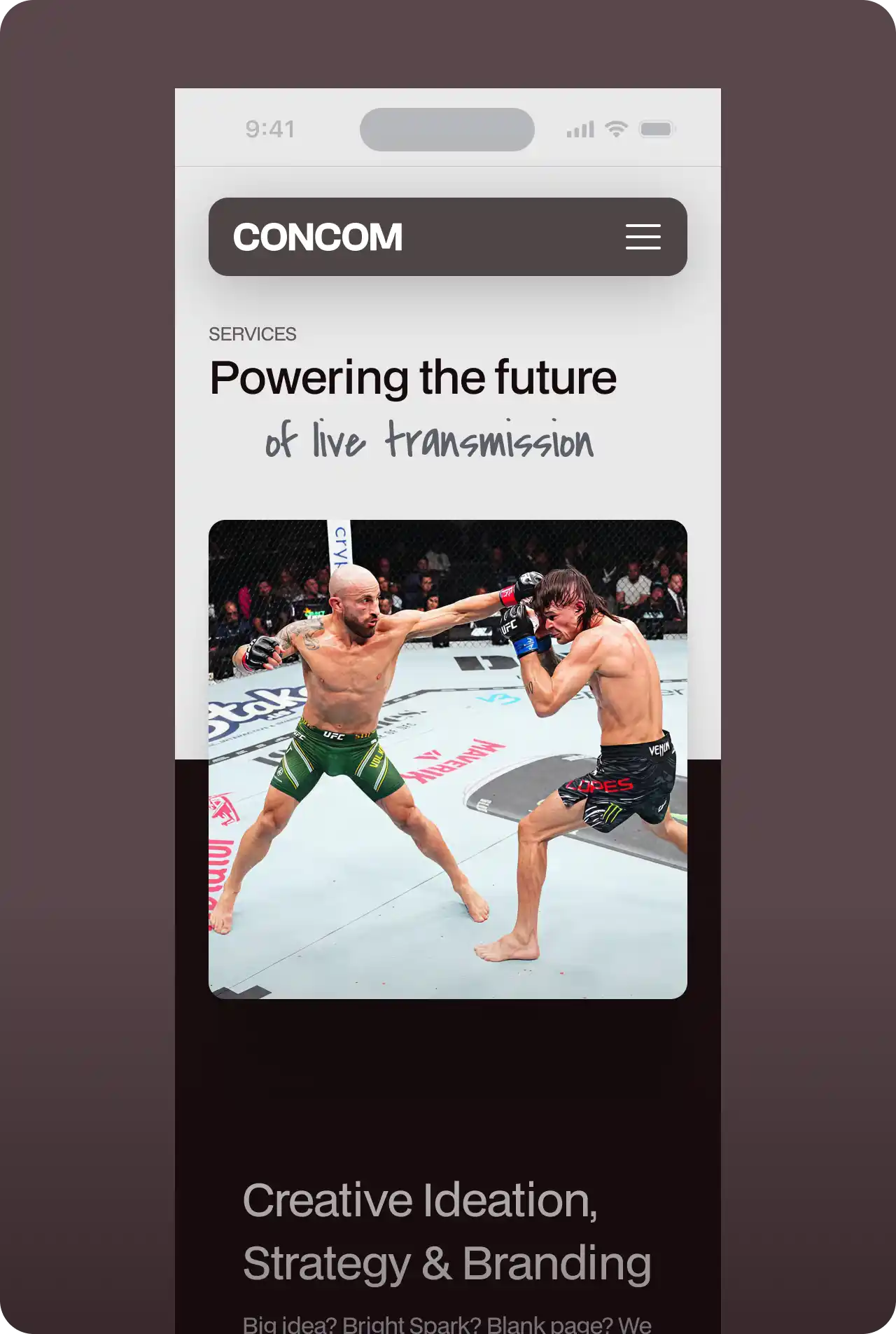 ConCom had the kind of portfolio most studios dream about - collaborations with Twitch, UFC, and brands that practically live on billboards. But their website told a different story. The work was electric; the design was⌠not. Think high-octane visuals trapped in a polite, outdated layout. Visitors came for the content and left wondering if this was the same team behind those explosive campaigns.