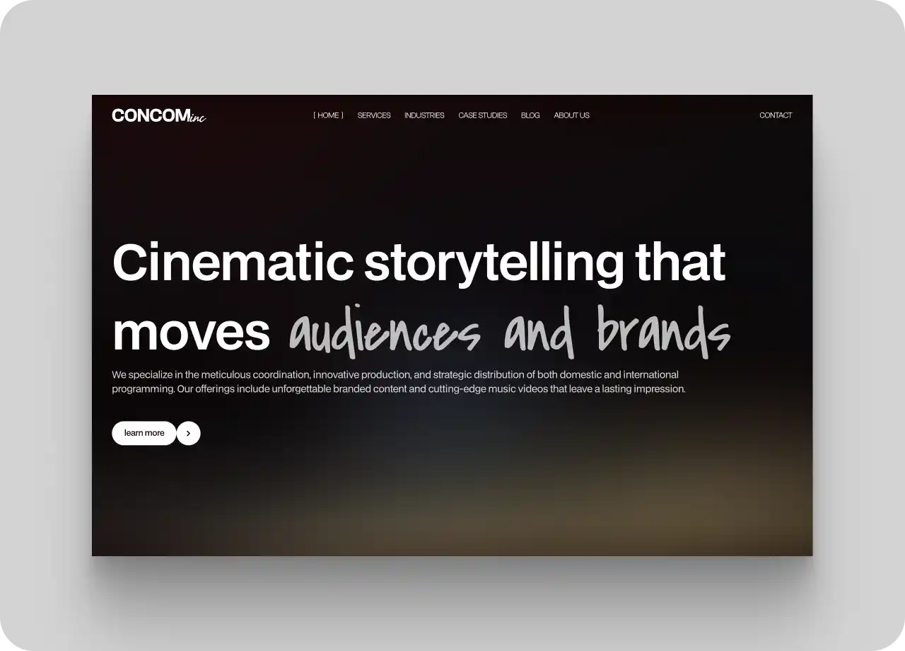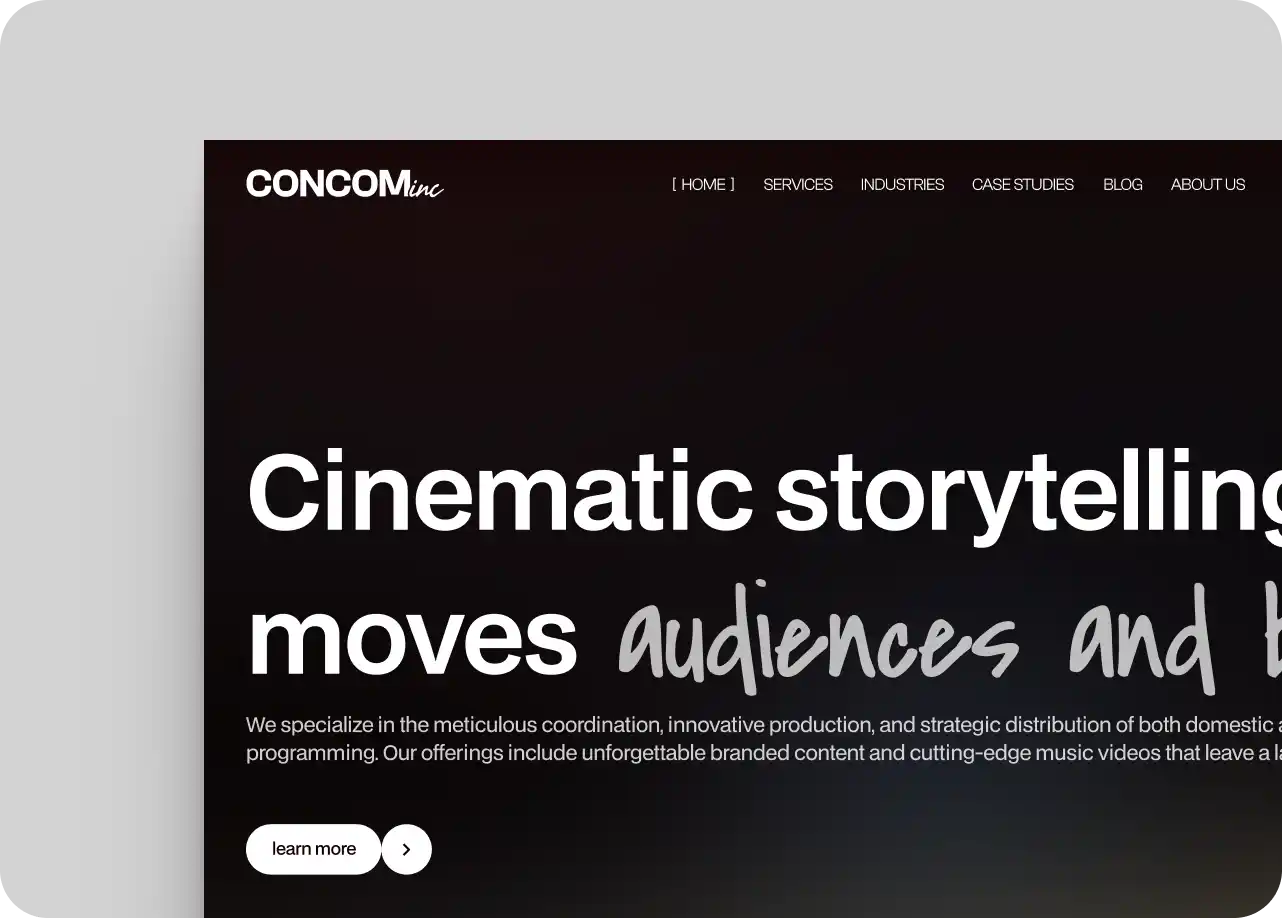 ConCom is a production studio that turns creative chaos into commercial gold. Theyâve worked with brands like Twitch, UFC, and other industry giants that donât settle for âgood enough.â Their case studies read like a Hollywood highlight reel â every frame designed to impress. But there was a catch: while their video work screamed premium, their website whispered 2014. Thatâs when they came to Integritas for a complete website design and brand update that would finally match the scale of their projects.